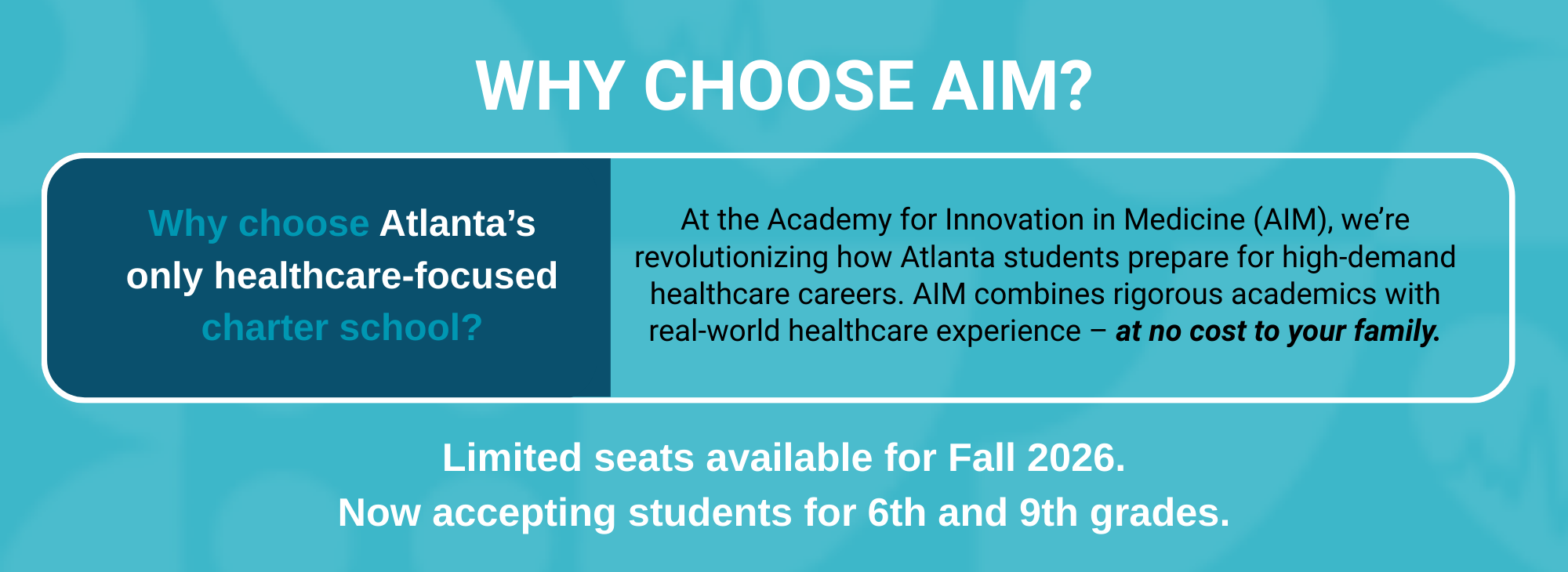 Unlike any other school in Georgia, AIM gives students an entirely new entry point into healthcare careers, starting on day one. AIM links education to real-world opportunity, offering youth the support, mentorship, and belonging they need to thrive.
